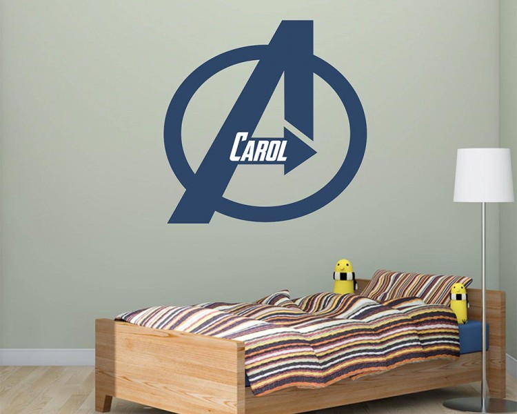 The decal will be two pieces. You will get an Avengers decal and a separate name decal. You can apply it as shown in the pictures or you can put the name below the logo. It's really up to you how you want it to look.