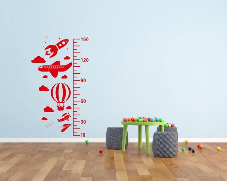 The Blue Sky Growth Chart Decal including airplane,rocket, hot air balloon and clouds is the perfect addition to your kid's bedroom!