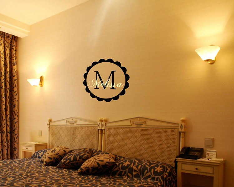 This wall decal is a customized name with the initial of your name in two colors. And around the name, there is a lovely around circle name frame.