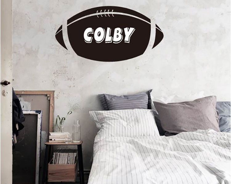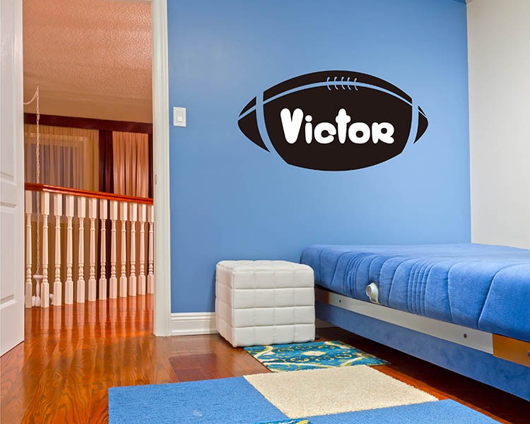 This wall decal is a rugby vinyl decal. And inside the rugby, you may have your own name customized.