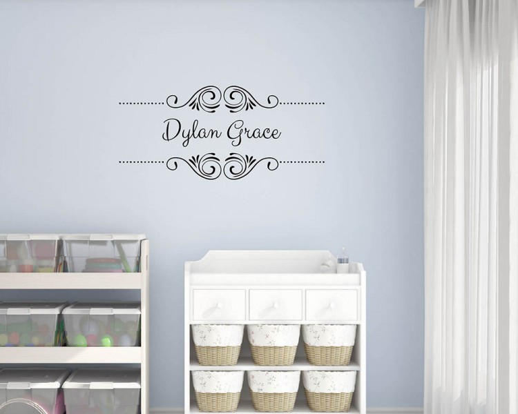 This wall decal is a customized full name vinyl decal in a lovely floral frame. It is especially deisnged for children to bring some personality to their rooms.