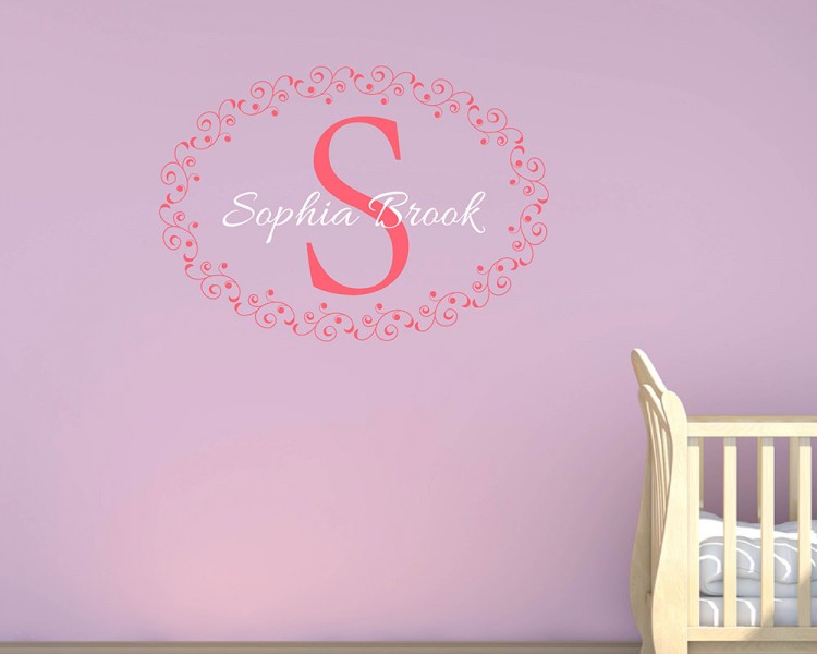 -Your Name Decal, an Initial Decal and a Damask Frame