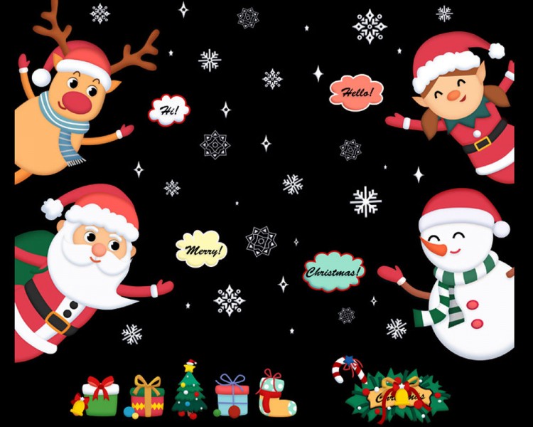 All the snowflakes and character stickers come as separate elements so you can arrange them as you want across one or multiple windows, doors, walls and mirrors.