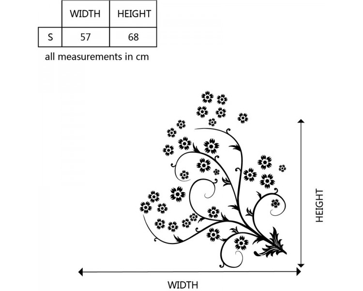 This wall decal is about a beautiful floral branch, and on and around the branch there are many flowers.