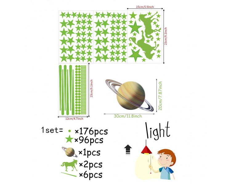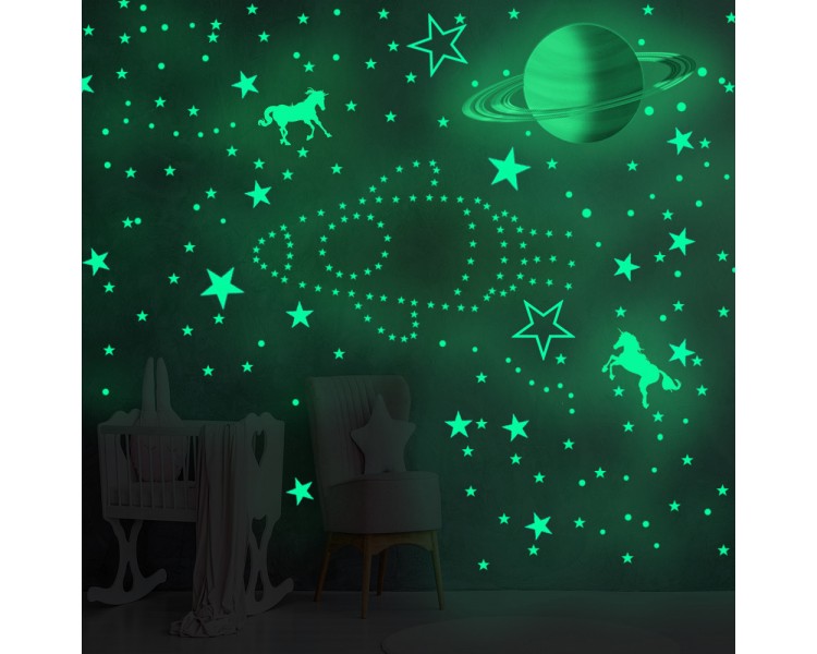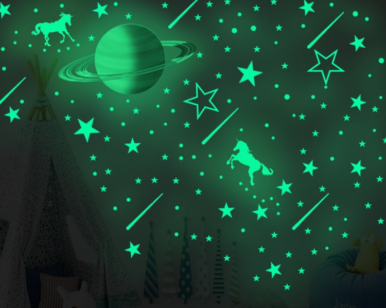 Various patterns: the glow in the dark wall stickers come with different cute patterns like unicorn, planet, moon, stars and dot, just give rein to the imagination and create an attractive art work, add charms to the interior design while giving a surprise to people that you care about