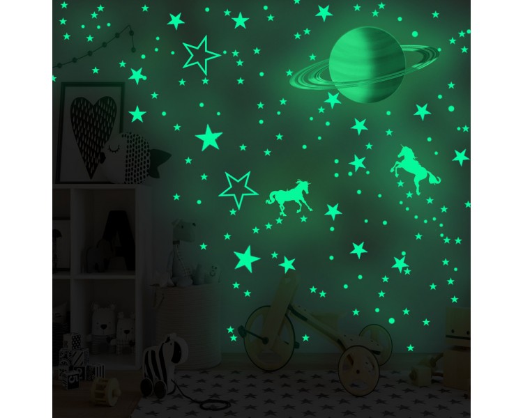 Wide usage: the luminous unicorn and star stickers are eye-catching decorations to create a dreamlike atmosphere and add romantic vibes for bedroom, kindergarten, dormitory, baby room and so on, good for celebrating birthday, wedding, various party and carnival, can be pasted on wall, ceiling, window and door, etc.