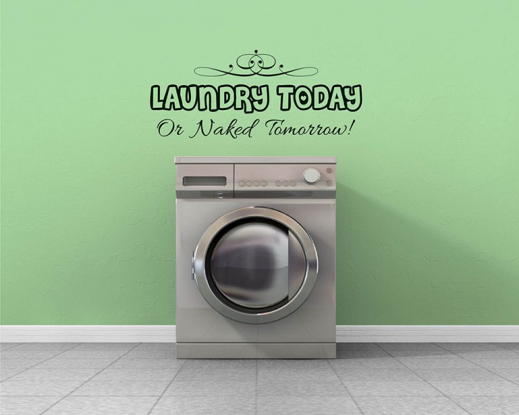 This wall decal is especially designed for laundry room with the saying laundry today or naked tomorrow!