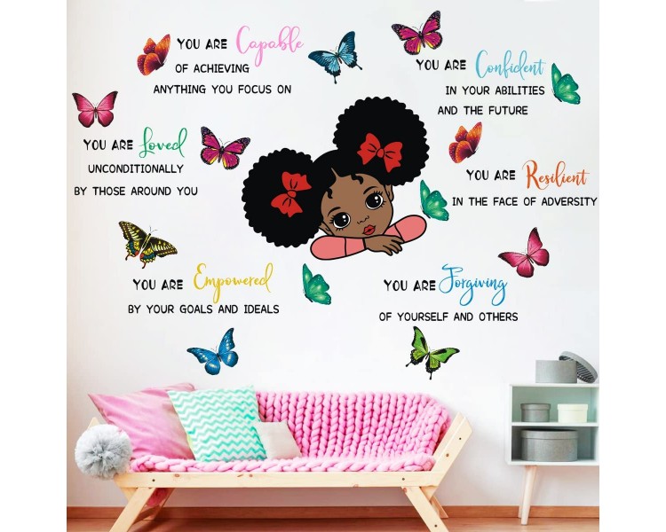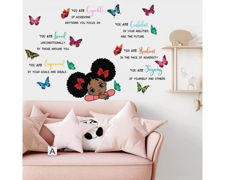 【What you get】You will get 3 pieces Black Girl Magic wall decals for girls bedroom with butterflies and Inspirational Quote words, Bright colors and rich cartoon patterns will greatly add a magic and sweet touch to your baby girls bedroom.