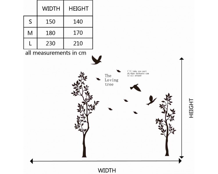 This wall decal is about 2 loving trees. You may paste this decal in your living room as well as you bedroom.