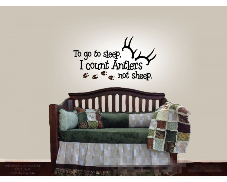 If your little one is bound to be a hunter when they grow up, this wall decal is for them! "To go to sleep, I count Antlers not sheep".