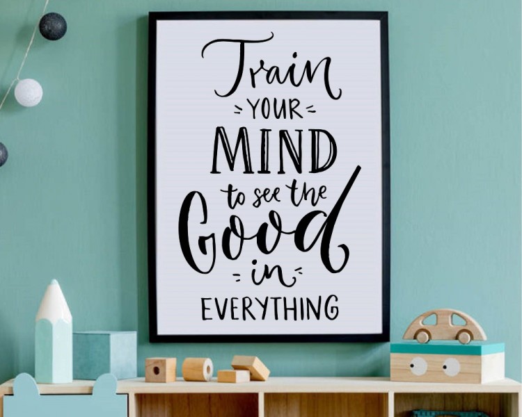 Train your mind to see the good in everything. A beautiful reminder to put up in any room!