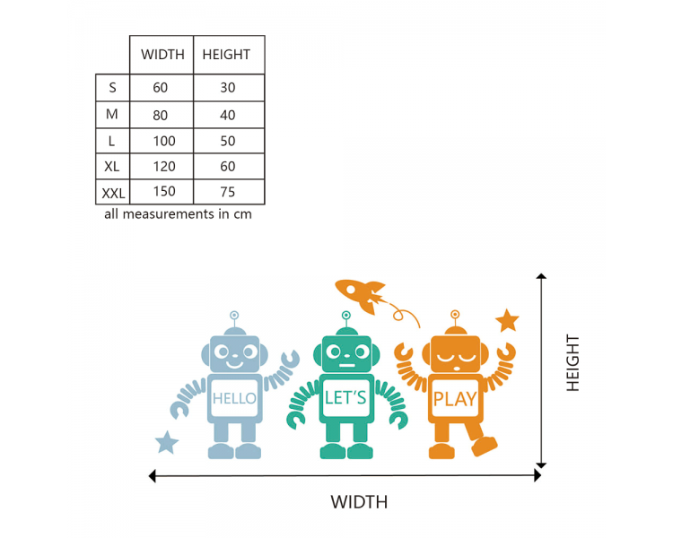3 robots of different colors wall decal. Robot Boy Nursery Wall Decal Art Decor Sticker.Decorate your child's playroom or bedroom with these friendly space robots!